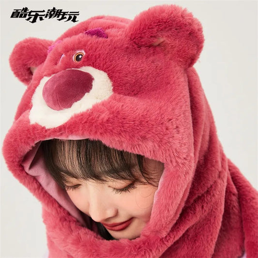 Cute plush thickened scarf gloves all-in-one hooded warm scarf